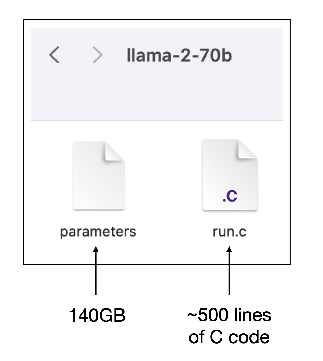 The model is a large file of weights, code loads the weights into the correct neural network topology and repeatedly executes ahuge number vector/matrix operations (image source)